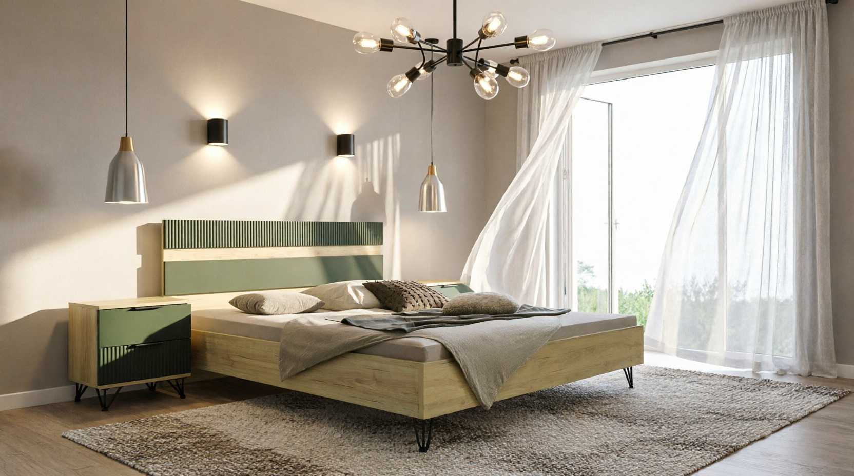 საწოლი 2-16 «როქსი» პ6.948.1.05, ლდსპ+მდფ, გრინ სოფტი+მუხის კანტრი მოოქროვილი, 2000х1600 мм , 2060×1680×950