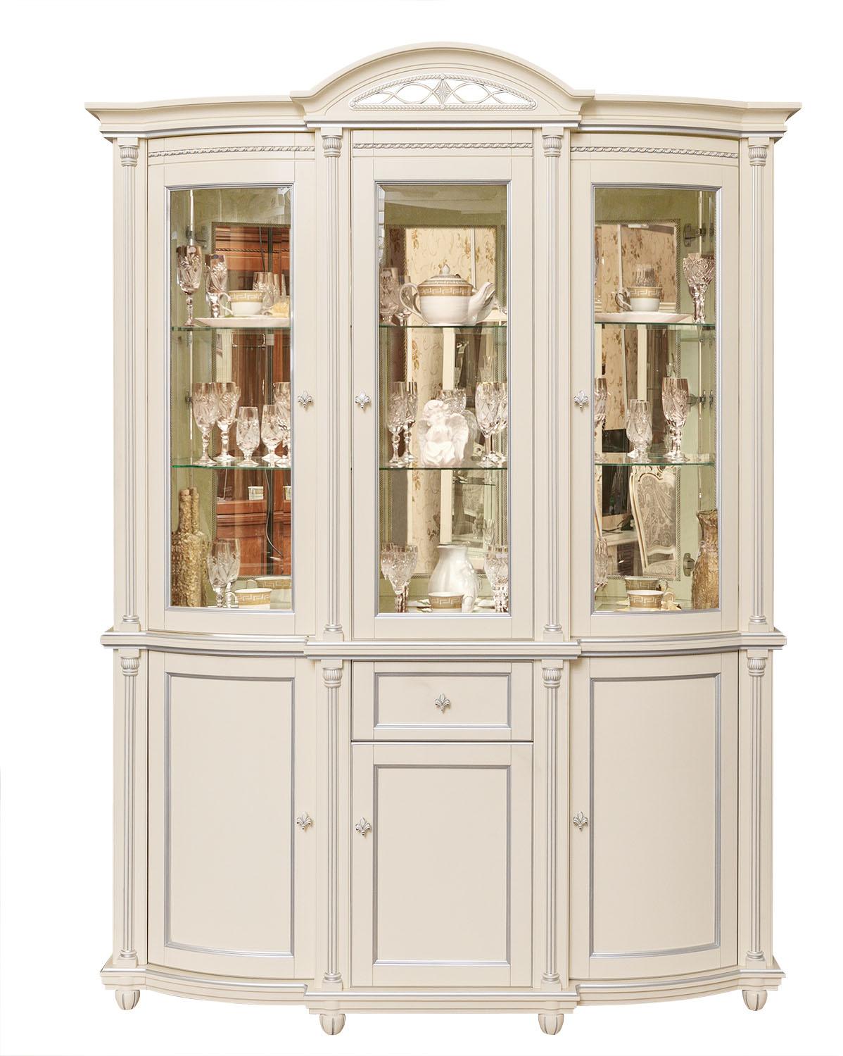 კომბინირებული კარადა 3დ «ვალენსია კლასიკი» პ3.0589.0.03, მყარი არყი, ანტიკური ტემპერა ვერცხლით