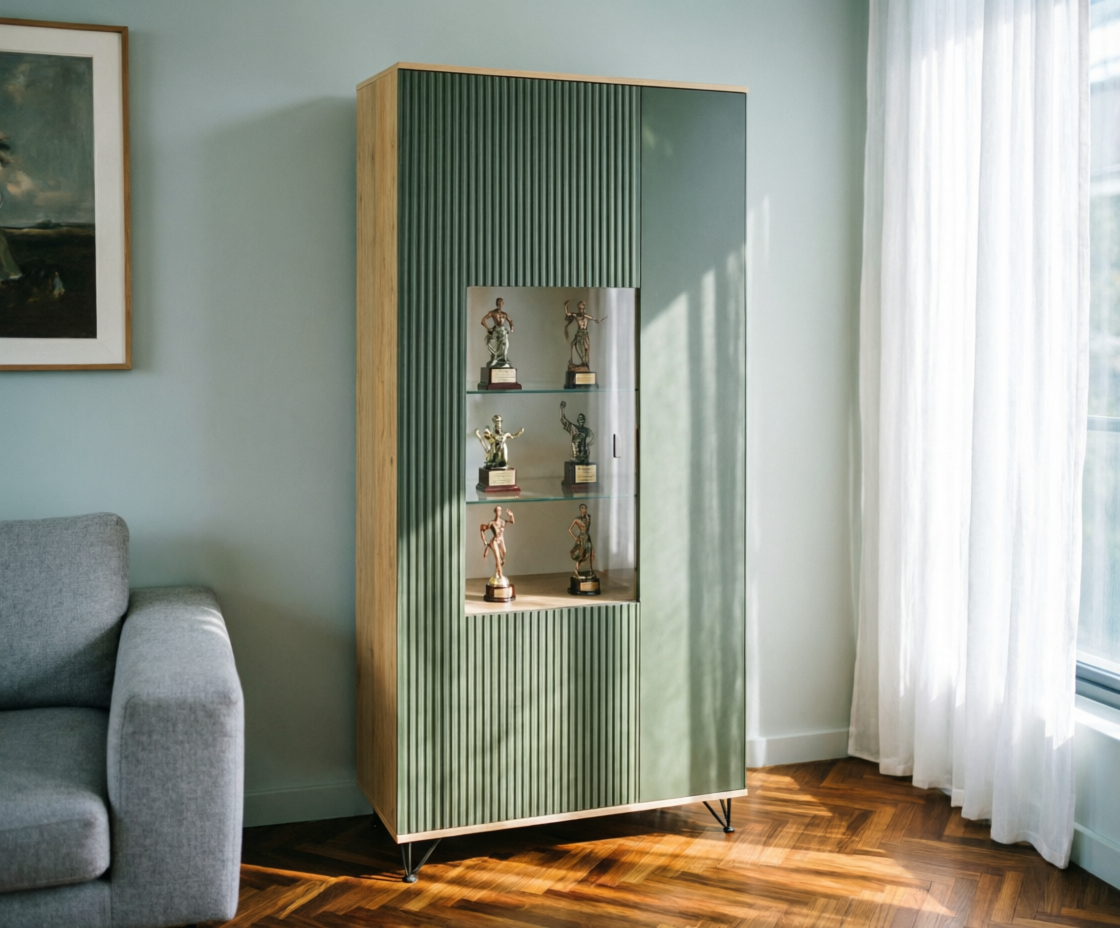 Шкаф «Рокси» П6.948.0.05, ლდსპ, ნაცარი სოფტი + მუხა ნოქსი