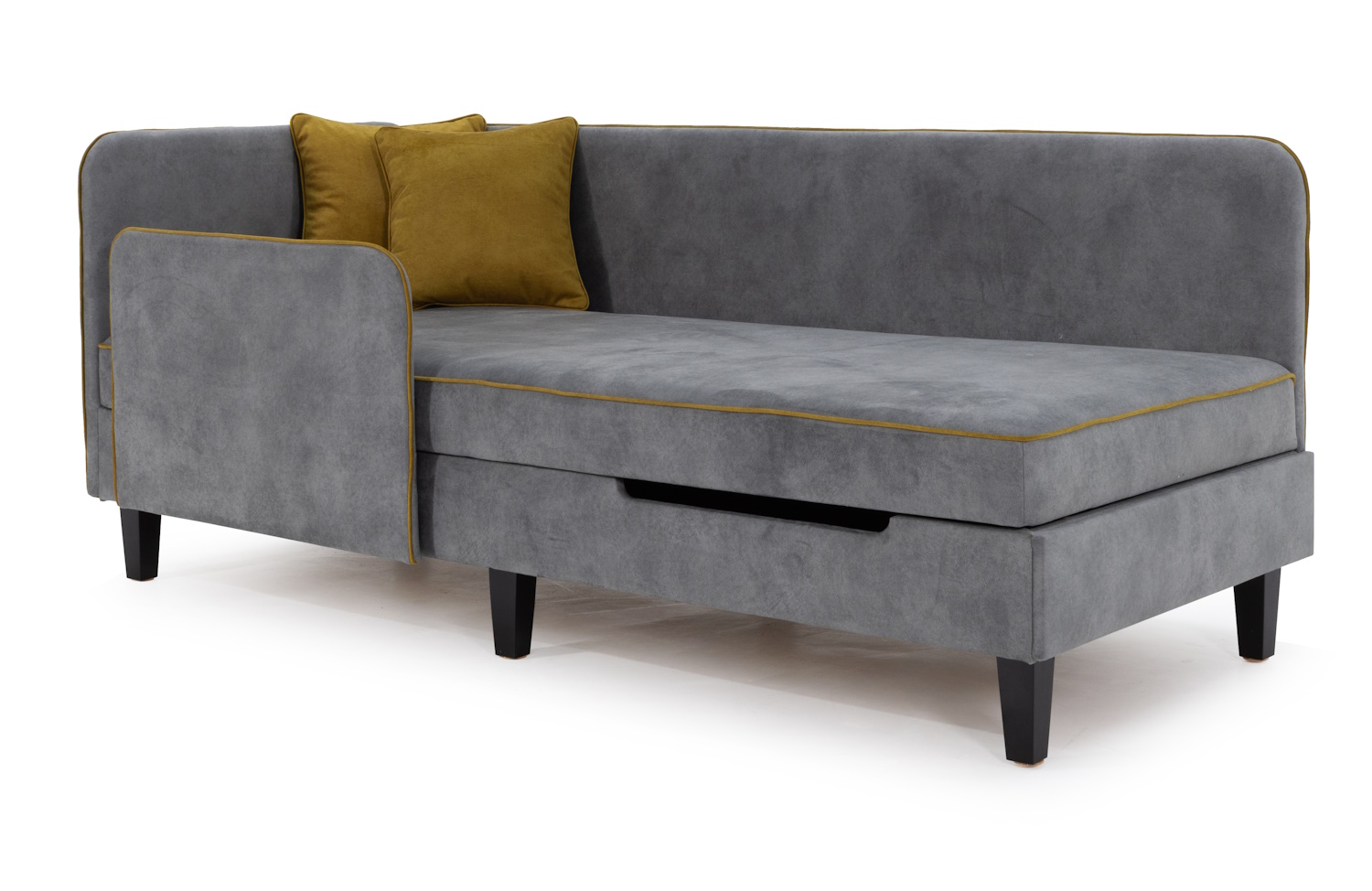 Стильное и продуманное решение для детской или подростковой комнаты. Ее лаконичный дизайн с мягкими спинками и контрастным кантом легко впишется в современный интерьер. А если вы предпочитаете универсальность, кант можно заказать в тон обивки. Основой спального места служит гипоаллергенный пенополиуретан и пружинный блок «Bonnell», которые обеспечивают комфортный сон и правильную поддержку тела. Конструкция основания обеспечивает естественную вентиляцию, поддерживая комфорт, свежесть и чистоту спального места. Защитный бортик добавляет уюта и безопасности: его легко переставить на нужную сторону, что особенно удобно для активных детей. Просторный ящик под сиденьем станет отличным местом для хранения постельного белья и вещей. Высокие деревянные опоры не только подчеркивают стиль модели, но и упрощают уборку. А декоративные подушки в комплекте добавляют уют и завершенность образу.